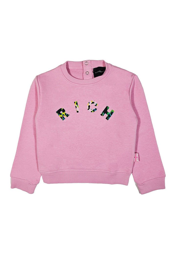 Felpa girocollo neonata, colore rosa, cotone garzato