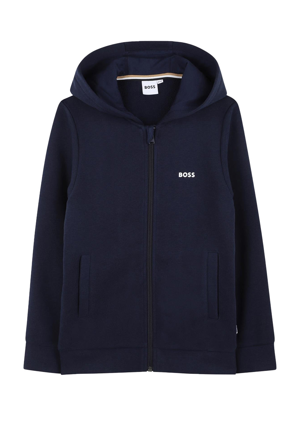 ART. J52321 849 Felpa zip con cappuccio bambino, colore blu, 87% cotone 13% poliestere