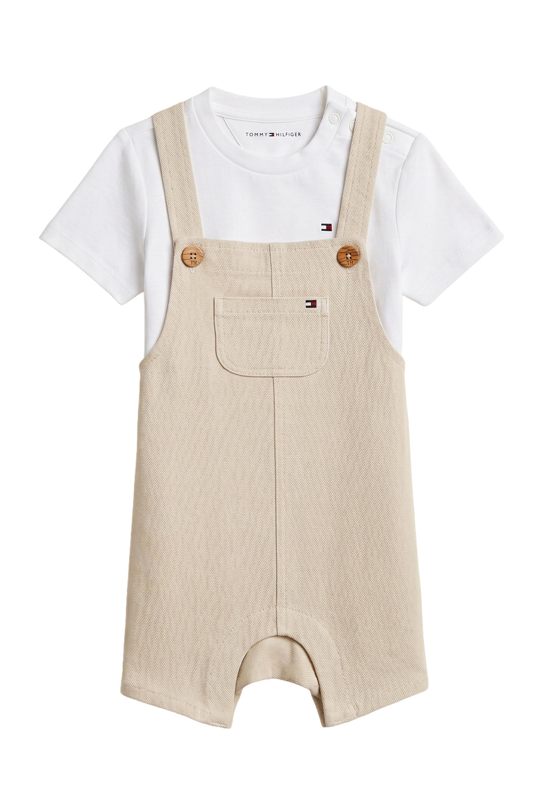 Completo salopette beige per neonato