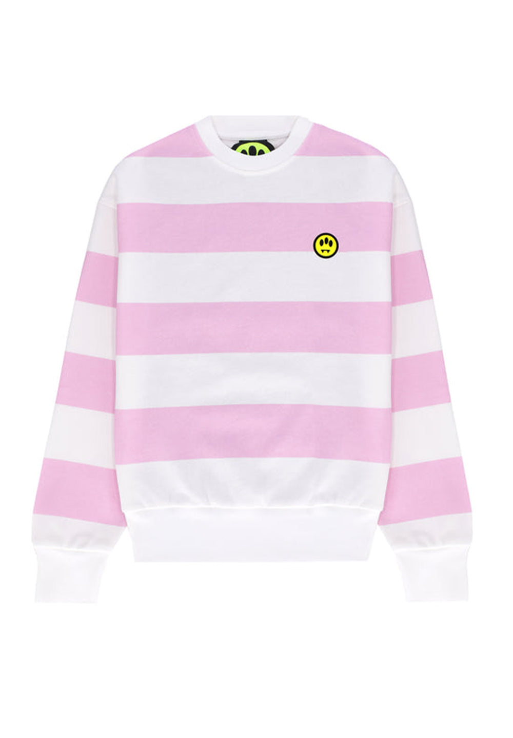 Felpa girocollo bambina, colore rosa-bianco, cotone garzato