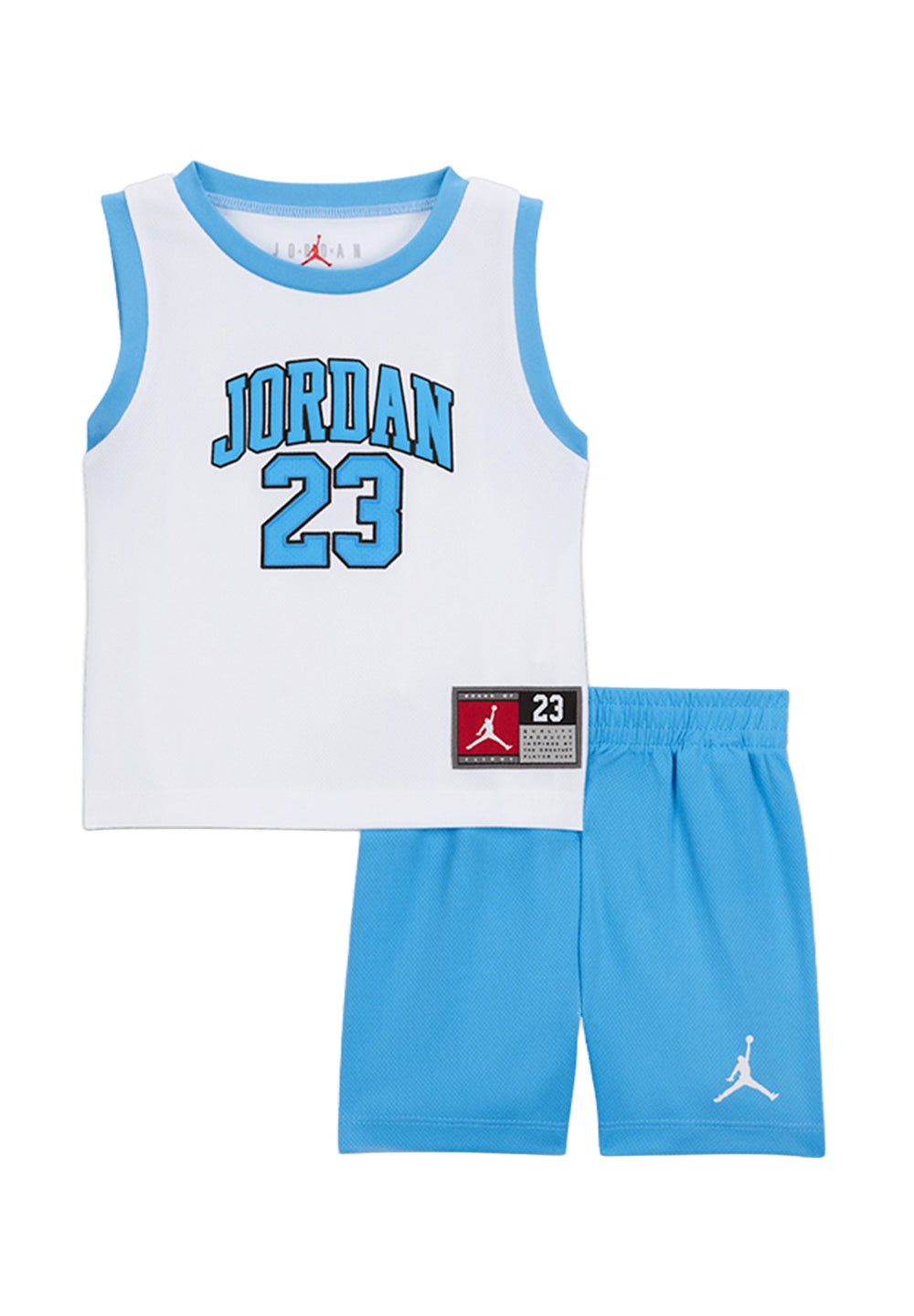 Completo neonato, colore bianco-celeste, poliestere