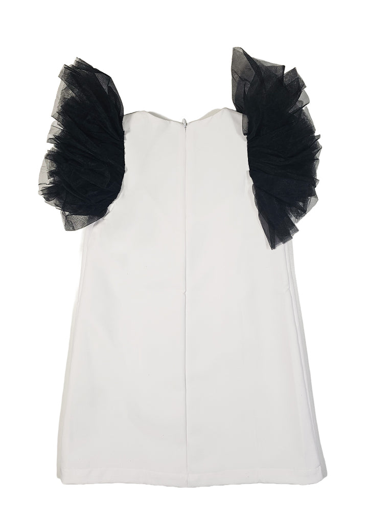 Robe fille, noire et blanche, 87% polyester 13% élasthanne