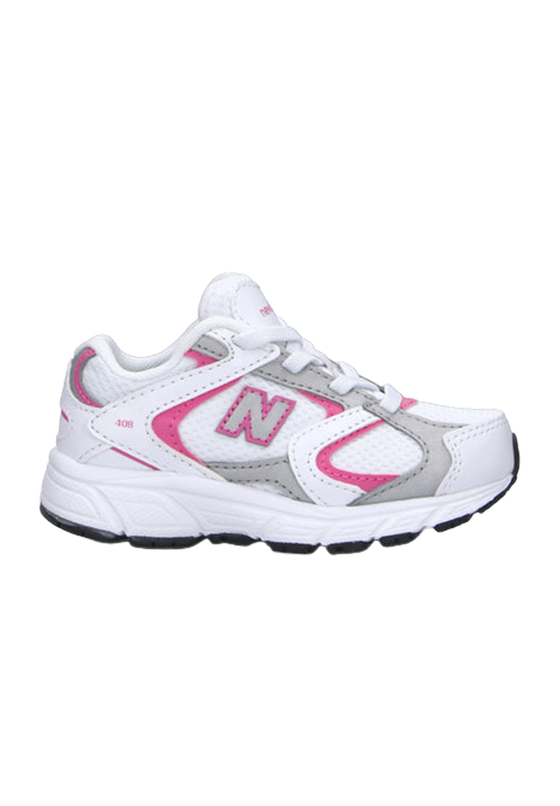 New Balance Sneakers 408 neonata, colore bianco-rosa, tomaia in tessuto, suola in gomma